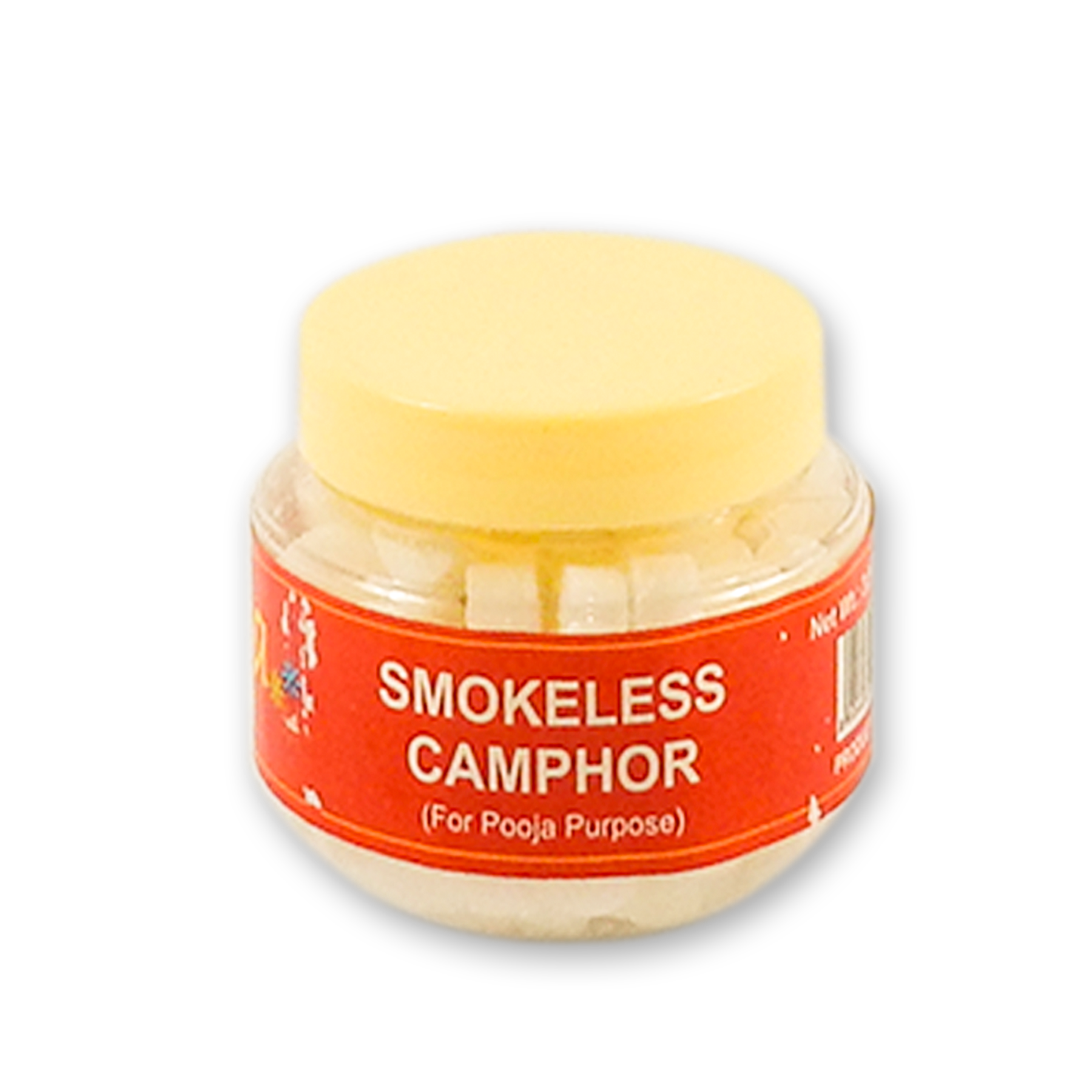 Smokeless Camphor is a type of camphor (Cinnamomum camphora) that is designed to burn without producing smoke. It is often used in religious rituals, meditation, and aromatherapy due to its soothing properties and pleasant aroma.